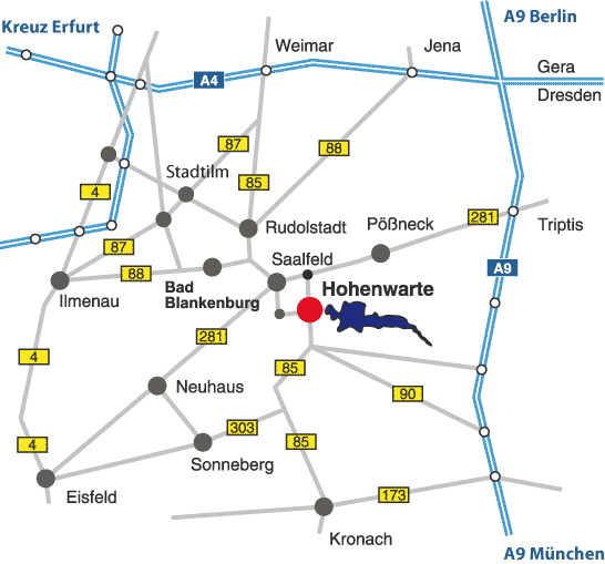 Lage des Hohenwartestausee im Freistaat Thüringen